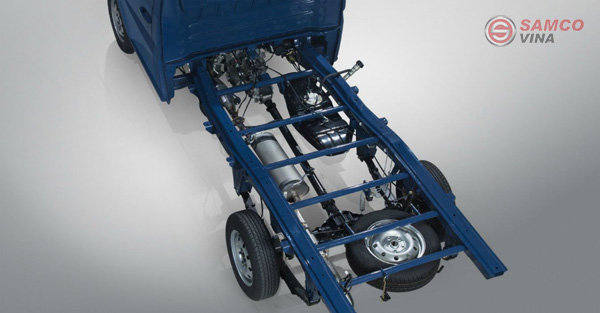 Khung xe hay còn được gọi là chassis có nhiệm vụ nâng đỡ và giữ vững thùng xe khi di chuyển. Thông thường, khung xe tải sẽ được cấu tạo từ hai thanh xà thẳng. song song hình chữ U. Trong một số trường hợp sẽ là 2 thanh xà hình bậc hay hình nêm. Chúng được nhiều thanh ngang nối lại với nhau.